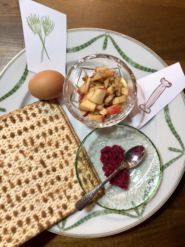 Seder plate for virtual Seder. Contributor Karen Levi drew items she couldn't get at height of Pandemic fear.